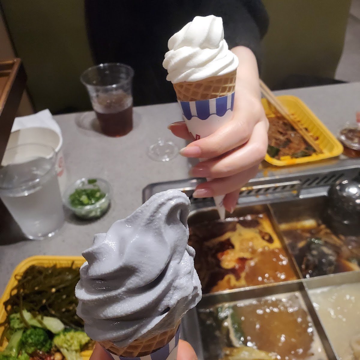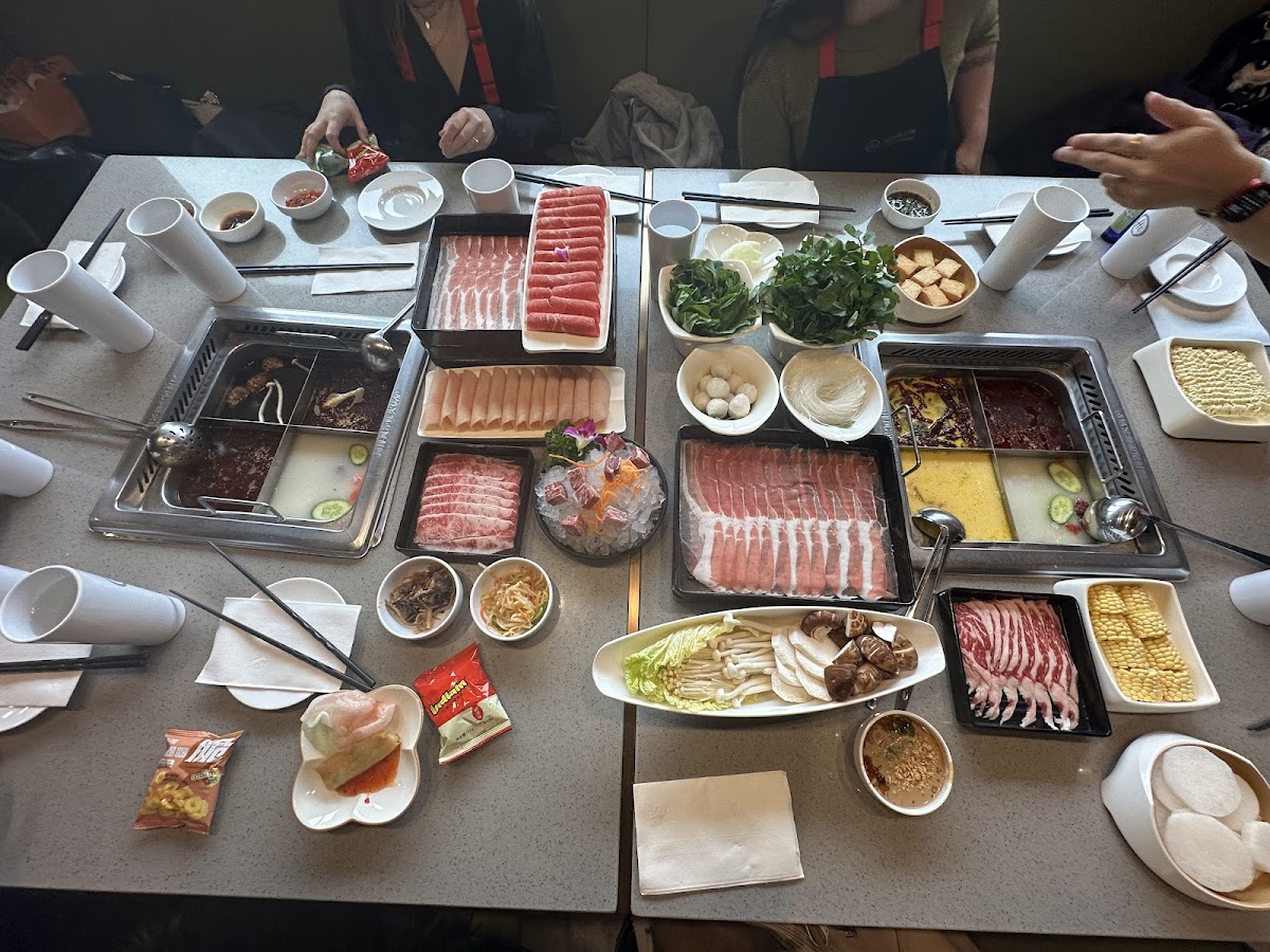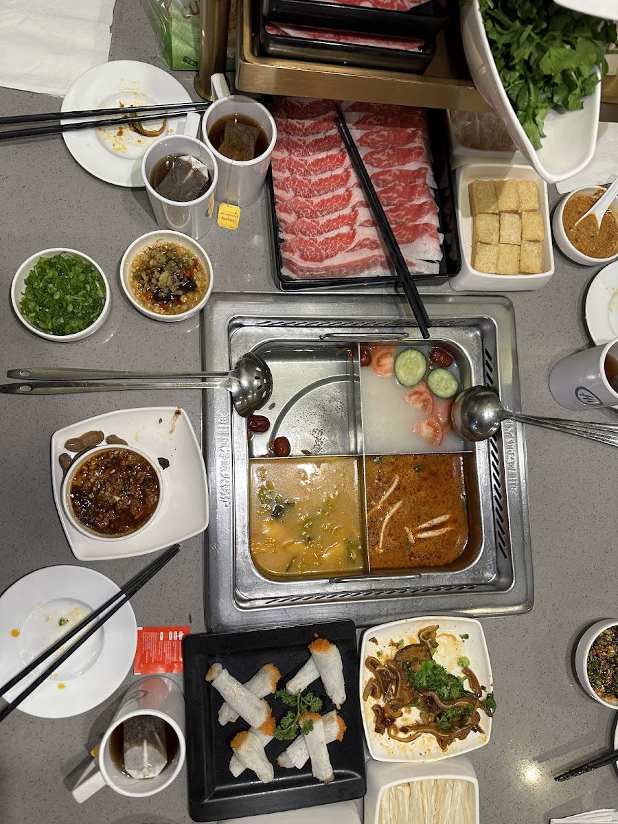 Haidilao Huoguo’s menu highlights familiar hot pot staples with a few standout options like the tomato soup base, mushroom broth, and a "fish shrimp duo platter" that showcases fresh seafood. The sauce station is an especially popular feature, allowing diners to craft personalized dipping blends, adding a hands-on element that makes each meal unique. Light bites and desserts, including fried chicken and soft serve ice cream — particularly the mango milk tea flavor — provide a nice balance between savory and sweet, rounding out the meal.