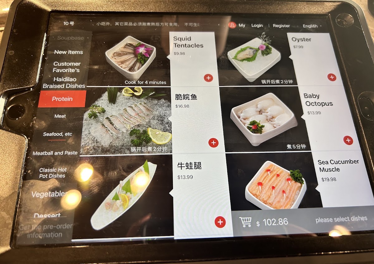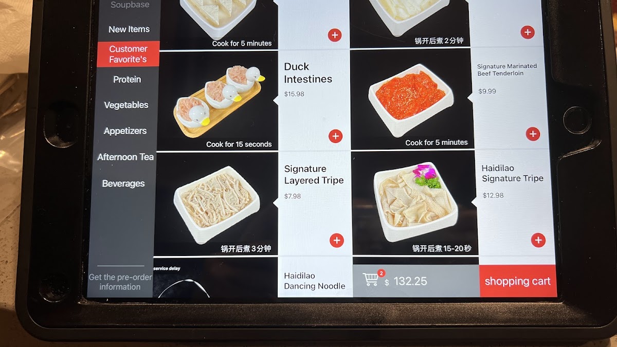 - Proteins and Special Items: The menu features traditional hot pot proteins such as fish, shrimp (notably the fish shrimp duo platter), and specialty items like Duck Tongue.